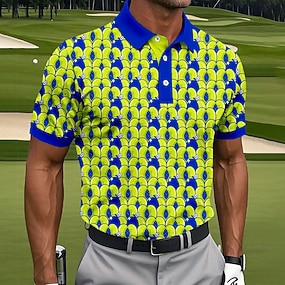 Férfi Grafika Pólóingek Golfing Rövid ujjú Pólóingek Galléros ingek Alkalmi Nyaralási viselet Rave Wear Party ruhák Gombok 3D nyomtatás Sárga Rubin Medence