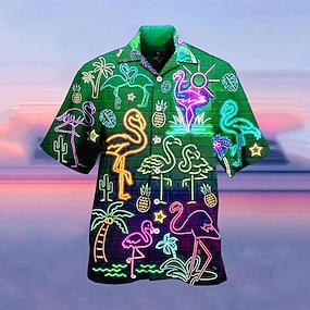 Férfi Flamingó Madár Hawaii ing Gombos póló Aloha ing Rövid ujjú Hawaii Vakáció Szabadság Strandruházat Nyár Térfogatcsökkenés 3D nyomtatás Első egy zseb Vászonszerű ing Medence Arcpír rózsaszín