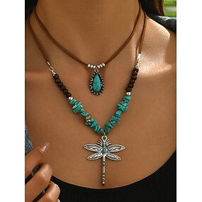 női réteges szitakötő türkiz nyaklánc – bohém medálékszer fesztiválokra, hétköznapi viseletre és ajándékba