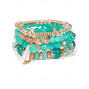 Női műkristály gyöngyös karkötő szett arany díszítésekkel, bohém réteges, rugalmas karperecek partikra, esküvőkre és mindennapi viseletre