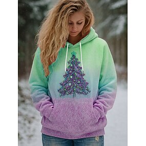 Női Pulóver Hoodie pulóver Grafika Karácsonyfa Alkalmi Hosszú ujj Kapucni Normál felsők Party estélyi viselet Utca Hétköznapi Arcpír rózsaszín Medence Bíbor Lóhere Tavasz Ősz Tél