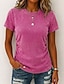 Női Póló Pólók Henley felső Vaffel kötött topok Tömör szín Stílusos Alkalmi Rövid ujjú V-alakú Normál felsők Napi Medence Fekete Fehér Narancssárga Lóhere Nyár Tavasz Ősz