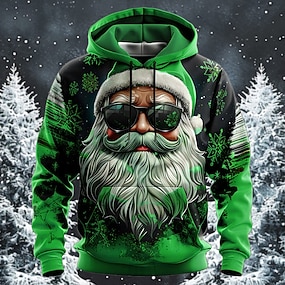 Karácsony Férfi Mikulás Kapucnis felsők Pulóver Divat Alkalmi Hosszú ujj Kapucni Vakáció Szabadság Utcai öltözék Rubin Burgundi vörös Medence Lóhere Nyomtatott Elülső zseb Tavasz & Ősz Tervező S M L