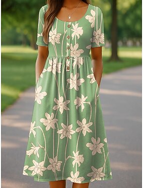 Női Midi ruha hétköznapi ruha Virágos ruha Elegáns Divat Modern Szabadtéri Vakáció Alkalmi Normál Virágos Rövid ujjú V-alakú Medence Fekete Világoszöld Rubin Nyár Tavasz