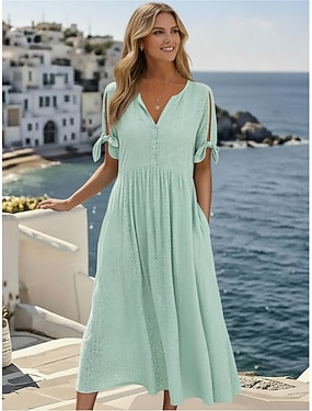 Női Midi ruha Fehér ruha A vonalú ruha Rakott ruha Sima ruha Elegáns Divat Modern Hétköznapi Napi Szabadtéri Laza öltözet Sima Rövid ujjú V-alakú Medence Fekete Fehér Arcpír rózsaszín Nyár Tavasz