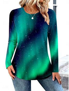 Womens póló hosszú ujjú környakú hosszú tunika ombre grafikus textúra vintage stílusos modern kerek nyakú szokásos felsők napi nyomtatás kék lila narancs zöld ősz előkészület