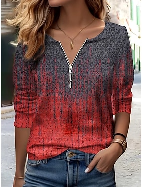 Női Póló Cipzár Nyomtatott Ombre Grafika Absztrakt Elegáns Szüret Stílusos Hosszú ujj V-alakú Kerek Vágott nyak Normál felsők Napi Hétvége Bor Tavasz Ősz Tél