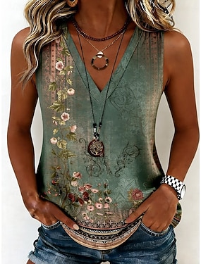 Női Atléta Nyomtatott Virágos Grafika Növények Stílusos Ujjatlan V-alakú Normál felsők Hétköznapi Lóhere Nyár Tavasz