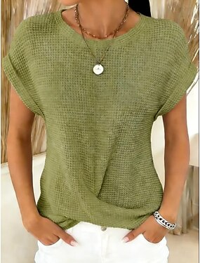 Női Póló Texturált Tee Top Jacquardszövet Fodrozott Tömör szín Elegáns Divat Stílusos Rövid ujjú Terített nyak Normál felsők Napi Alkalmi Hétvége Fekete Fehér Bor Lóhere Nyár Tavasz