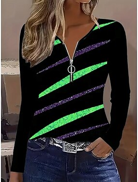 Női Póló Cipzár Nyomtatott Grafika Mértani Szüret Divat Stílusos Hosszú ujj Terített nyak V-alakú Normál felsők Napi Medence Bíbor Lóhere Tavasz Ősz Tél