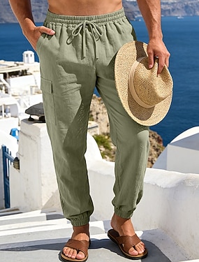 Férfi Kocogók Vászon nadrág Nadrág Nyári nadrág Bő nadrág Zsinór Rugalmas derék Sima Mokaszinok Könnyű Teljes hossz Napi Tengerpart Szabadság Szabadság Divat Sötét Khaki Fekete Mikroelasztikus
