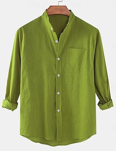 Férfi Ing Bandgalléros ing Nyári póló Strandruházat Alkalmi ing Gombos póló Sima Vakáció Szabadság Fehér Égszínkék Lóhere Khakizöld Hosszú ujj Gallér Ruházat