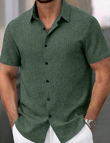 Pamut és ágynemű Klasszikus Férfi Ing vászon ing Nyári póló Stranding Gombos póló Fekete Fehér Medence Rövid ujjú Sima Térfogatcsökkenés Nyár Vakáció Szabadság Ruházat