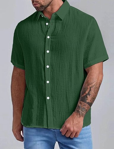 Férfi Ing Nyári póló Alkalmi ing Gombos póló Pamut póló Sima Tengerpart Vakáció Fekete Arcpír rózsaszín Égszínkék Bíbor Rövid ujjú Térfogatcsökkenés Nyár Ruházat