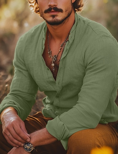 Férfi Ing Bandgalléros ing Nyári póló Strandruházat Alkalmi ing Gombos póló Sima Vakáció Szabadság Fehér Égszínkék Lóhere Khakizöld Hosszú ujj Gallér Ruházat