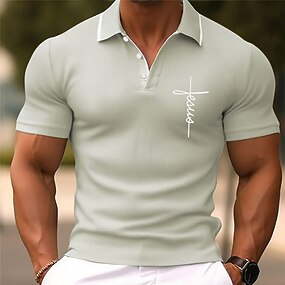 Férfi Geometriai Pólóingek Rövid ujjú Pólóingek Galléros ingek Alkalmi Sportruházat Gombok Tavaszi nyár Medence Lóhere Katonai zöld