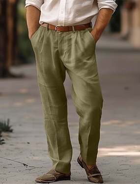 Férfi Vászon nadrág Nadrág Nyári nadrág Rakott nadrág Ruha nadrág Elülső zseb Egyenes lábbal Sima Mokaszinok Légáteresztő Teljes hossz Hétköznapi Napi Szabadság Divat Alap Fekete Fehér