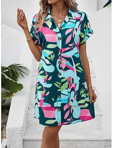 Női Mini ruha Váltó ruha Alkalmi Napi Tengerpart Normál Grafika Mértani Rövid ujjú Hajtóka Medence Lóhere Nyár Tavasz