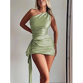 Női Mini ruha Szatén ruha Party ruha Bodycon ruha Divat Modern Szabadtéri Vakáció Parti Normál Sima Ujjatlan Félvállas Medence Fekete Fehér Rubin Nyár Tavasz