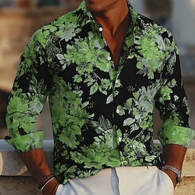 Férfi Virágos Virágminta Trópusi virágok Hawaii ing Aloha ing Nyomtatott ingek Hosszú ujj Ing Térfogatcsökkenés Üdülő Vakáció Utca Lóverseny Fekete Fehér Lóhere S M L