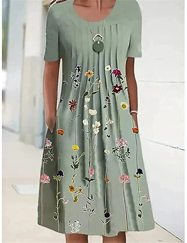 Női Midi ruha hétköznapi ruha Virágos ruha Elegáns Divat Modern Szabadtéri Vakáció Alkalmi Normál Virágos Rövid ujjú Szögletes Medence Fekete Fehér Arcpír rózsaszín Nyár Tavasz