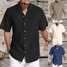 Férfi Ing Vászon ing Nyári póló Gombos póló Alkalmi ing Stranding Tömör szín Vakáció Hétköznapi Fekete Fehér Arcpír rózsaszín Lóhere Rövid ujjú Gallér Nyár Ruházat