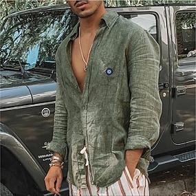 Férfi Ing Vászon ing Nyári póló Gombos póló Sima Hétköznapi Napi Fekete Fehér Arcpír rózsaszín Lóhere Hosszú ujj Gallér Tavaszi nyár Ruházat