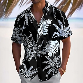 Férfi Kókuszfa Trópusi növények Hawaii ing Gombos póló Aloha ing Rövid ujjú Hawaii Üdülő Vakáció Szabadság Strandruházat Nyár Tavasz Térfogatcsökkenés galléros ingek Medence Fekete Fehér