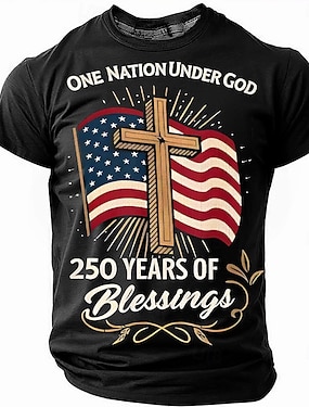 2026. július 4. 250. emléknap Férfi Biblia 3D Nyomtatott Kerek Nyakú Rövid Ujjú Póló Mindennapi Utca