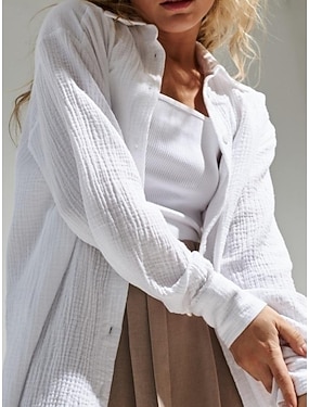 Női 100% pamut mini ruha műlen vászon váltóruha laza napi bő szabású sima hosszú ujjú galléros fehér nyár tavasz ősz