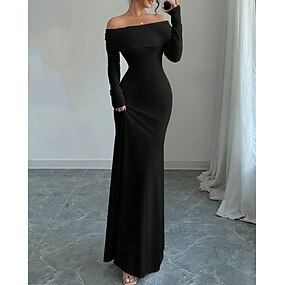 Női Midi ruha Fekete ruha Flitteres ruha Koktélruha Ünnepi ruha Alkalmi Utca Randi Normál Sima Hosszú ujj U-alakú Fekete Tavasz Ősz