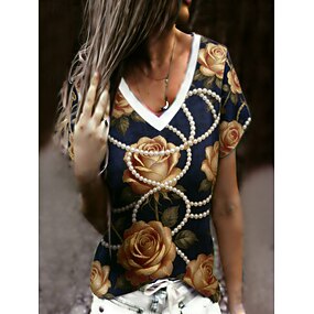 Valentin nap Női Póló Tee Top Nyomtatott Virágos Grafika Stílusos Klasszikus Alkalmi Rövid ujjú V-alakú Normál felsők Napi Alkalmi Hétvége Sötétkék Nyár Tavasz