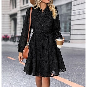 Női Mini ruha Fekete ruha hétköznapi ruha Koktélruha Ünnepi ruha Alkalmi Sport & Szabadtéri Utca Normál Sima Hosszú ujj Terített nyak Fekete Nyár Tavasz Ősz