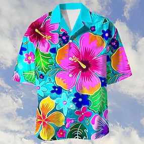 Férfi Virágminta Trópusi virágok Ing Hawaii ing Aloha ing Ing Kubai nyakörv Szabadság Divat Hawaii Szabadtéri Utca Hétköznapi Égszínkék Bíbor Sötétkék S M L