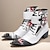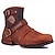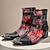 férfi valódi marhabőr, piros virágmintás csatos bokacsizma – gótikus punk stílusú színpadi és divatos participők