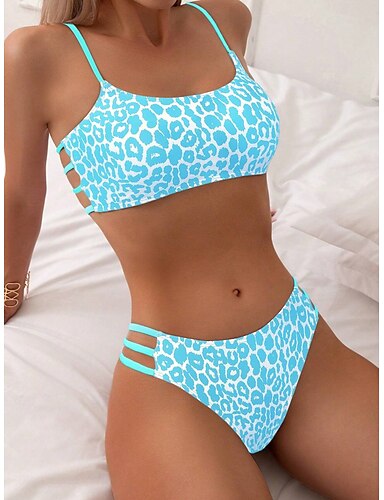 Női Fürdőruha Bikini 2 darab Fürdőruha Nyitott hátú Tropikus Strandruházat Leopárd U-alakú Ujjatlan Fürdőruhák