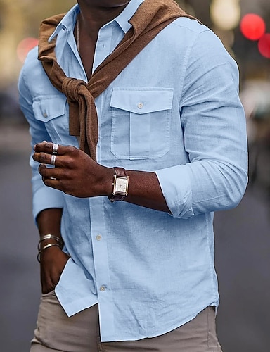 Férfi Ing Vászon ing Nyári póló Stranding Kihúzott ingek Sima Hétköznapi Napi Medence Fekete Fehér Arcpír rózsaszín Hosszú ujj Hajtóka Tavaszi nyár Ruházat