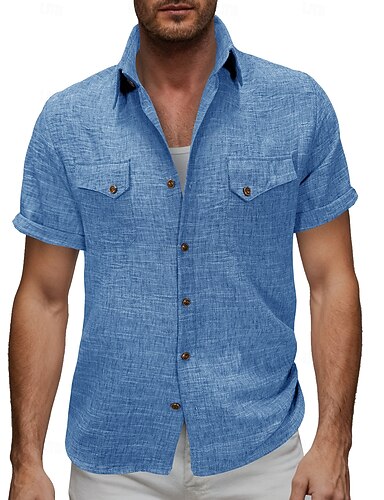 Pamut és ágynemű Klasszikus Férfi Ing vászon ing Nyári póló Stranding Gombos póló Fekete Fehér Medence Rövid ujjú Sima Térfogatcsökkenés Nyár Vakáció Szabadság Ruházat