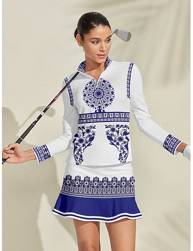Női POLO trikó Kék Fukszia Hosszú ujj Felsők Leopárd Női golffelszerelések ruhák ruhák, ruházat