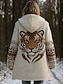 Női Kardigán Napi Alkalmi Grafika Állat Mértani Bordázott Kapucni Kollázs Zseb Gombok Hosszú ujj Normál felsők Kötött Szabadtéri Hétvége Barna Ősz Tél