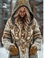 női kardigán viking vintage mindennapi etno stílus geometrikus színátmenet bordázott kapucnis zsebes gombok nyomtatott hosszú ujjú hosszú felsők kötött kültéri hétvége bézs ősz tél