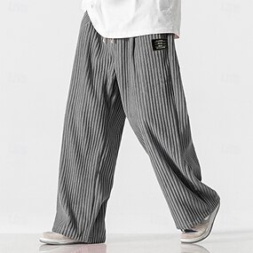 Férfi Melegítőnadrágok Széles szárú melegítőnadrág Nadrág Kordbársony Nadrág Bő nadrág Zsinór Rugalmas derék Tömör szín Mokaszinok Teljes hossz Szabadtéri Hétköznapi Napi Divat Etnikai stílus Fekete