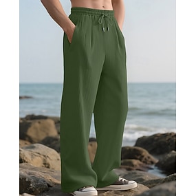 Férfi Melegítőnadrágok Nadrág Bő nadrág Egyenes szárú melegítőnadrág Gofri nadrág Zsinór Zseb Rugalmas derék Sima Mokaszinok Mekano Szabadtéri Napi Szabadság Divat Klasszikus stílus Fekete Fehér