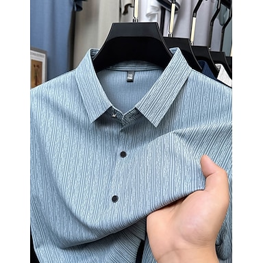 Férfi Ing Nem vas ing Függőleges csíkok Üzleti Munka Fekete Világoszöld Rubin Sötét tengerészkék Rövid ujjú Térfogatcsökkenés Nyár Tavasz Ruházat Gombok