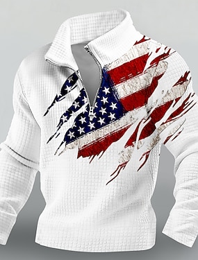 2026. július 4. 250. Emléknap Férfi 3D Nyomtatott Amerikai Zászló Környakú Hosszú Ujjú Póló Mindennapi