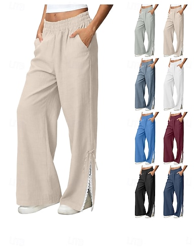 Női Széles lábszár Pamutszövet nadrág Nyári nadrág Utcai sikk Alkalmi Teljes hossz Közepes csípő Sima Zseb Elasztikus derékpánt Hasított kellemes Mokaszinok Nem elasztikus Napi Szabadtéri Utca