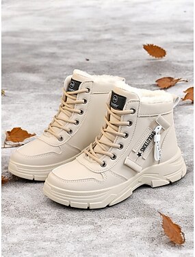 női fűzős bokacsizma meleg szőrme béléssel – stílusos bézs téli csizma a kültéri hideg időjárás kényelméért