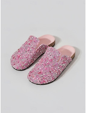 női rózsaszín csillámos bebújós papucs – csillogó strasszokkal díszített kényelmes klumpa, könnyű, párnázott lapos talpú cipő nyaraláshoz, kerti partikra, fesztiválokra &stílusos mindennapi viselet