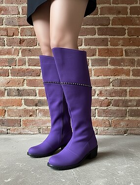 női lila velúr térdcsizma oldalsó cipzárral és szegecses részletekkel - stílusos alkalmi lábbeli őszre és télre