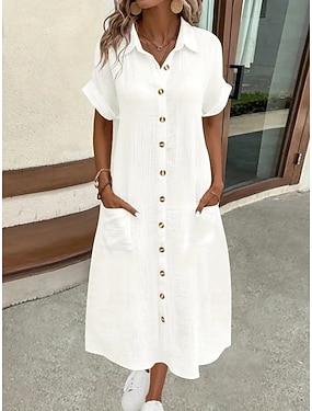 Nők 100% pamut midi ruha nyári ruha laza mindennapi normál illeszkedés sima rövid ujjú kerek nyakú fekete barna sárgabarack nyár